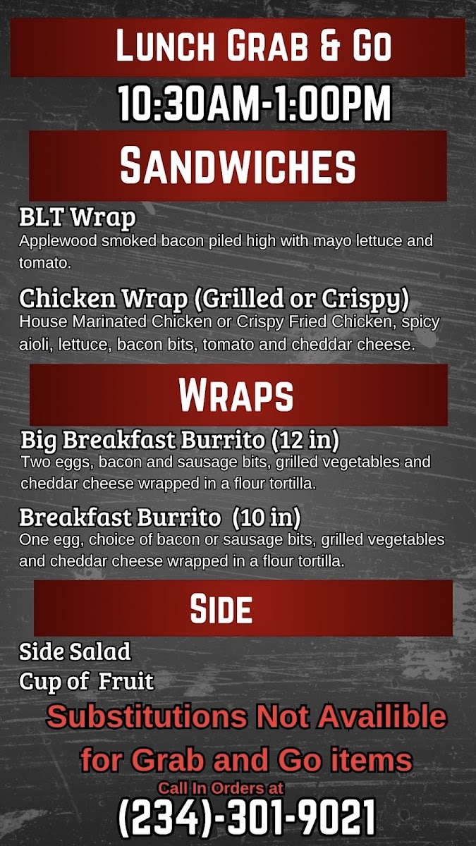 Lunch Menu Tues-Sun 11am-1pm